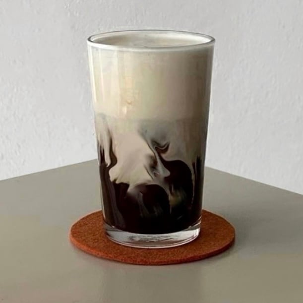 コーヒーにミルクを注いで