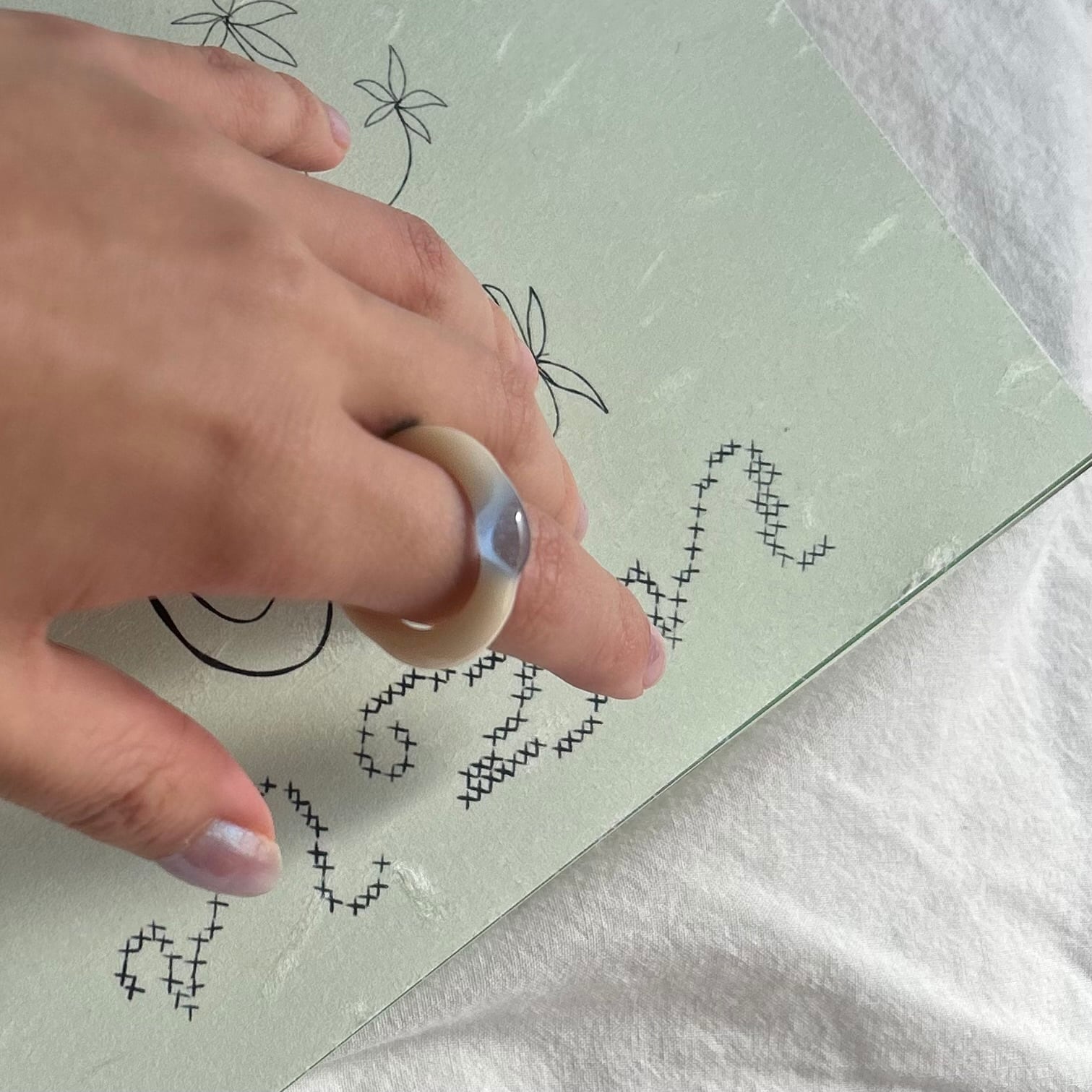 太陽にかざすと水色の光が指にさしとっても綺麗なのでぜひお試しください⋆